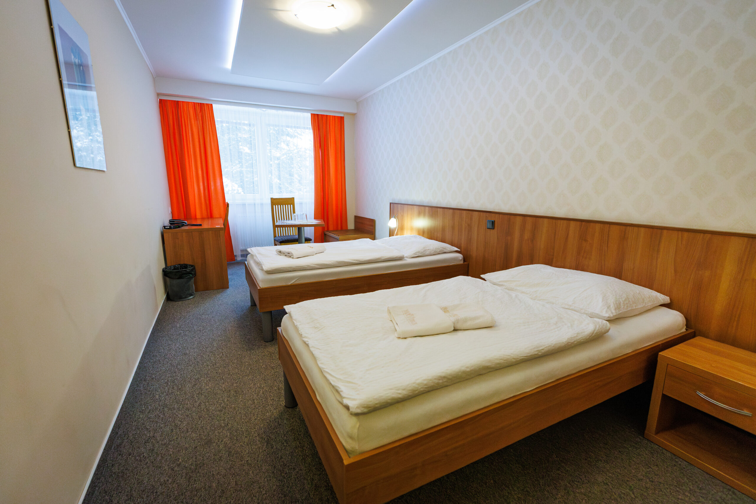 Pro hosty jsou připraveny jednolůžkové a dvoulůžkové pokoje, rodinné pokoje a apartmány.